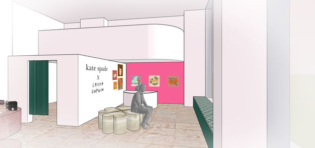 After measuring the space, I built up the model in Sketch up and began creating a customizable Kate Spade bag pop-up with a live illustrator to add another element of personalization.